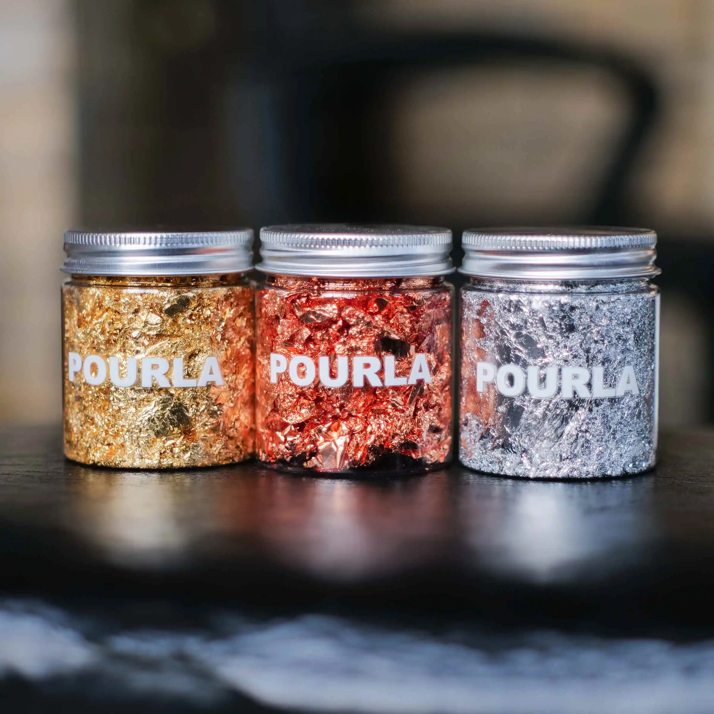 Our premium quality gold metallic foil metal leaf flakes come in convenient 10-gram bottles, offering an exceptional shine that resists